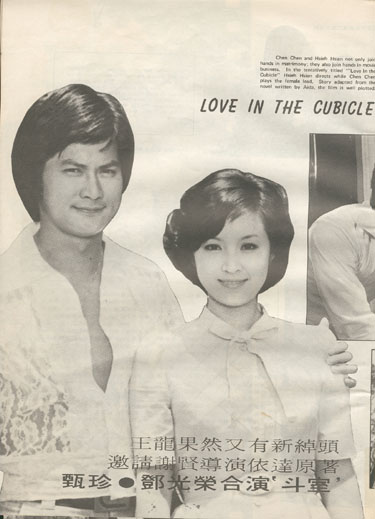 ONE YEAR'S FANTASY Alan Tang made the romantic drama One Year's Fantasy with Chen Chen (Jin Jen) in 1974. the movie was also called Love in The Cubicle. You can check out also the CineMart Magazine Article below. The Cast: Alan Tang Kwong Wing Chen Chen (Jin Jen) Rei Ni The Director Patrick Tse Yin Presented by James L. Wong The Scriptwriter Patrick Tse Yin The Producer Chang Song Lung The Story Alan Tang, the handsome son of a rich lady, loves to race cars. When he is blinded in an accident, he does not handle it well. He refuses to leave his room and throws temper tantrums. In addition, his beautiful but spoiled, rich girlfriend breaks up with him. Tang's mother hires an equally beautiful sweet girl played by Chen Chen to take care of Tang. At first Tang refuses to cooperate with her but eventually grows to like her. As their friendship deepens, Tang's mother becomes concerned, as she does not think Chen Chen is of the correct social class for her son. WARNING CONCLUSION:Tang sees an eye doctor and, with Chen Chen's help and encouragement, undergoes eye surgery. Tang's mother forces Chen Chen to leave. When Tang opens his eyes after surgery, he finds his mother and his former girlfriend there. Tang, who can now see, leaves the hospital and rushes to the ferry boat in search of Chen Chen. He does not know what she looks like but recognizes the feel of her hands when the two meet. They are reunited on the ferry. |